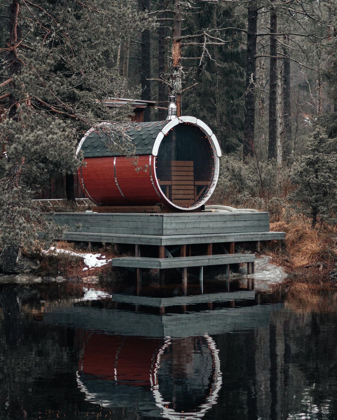 SAUNA-FASS aus Fichtenholz ( 2,5m lang / Ø2,2m)